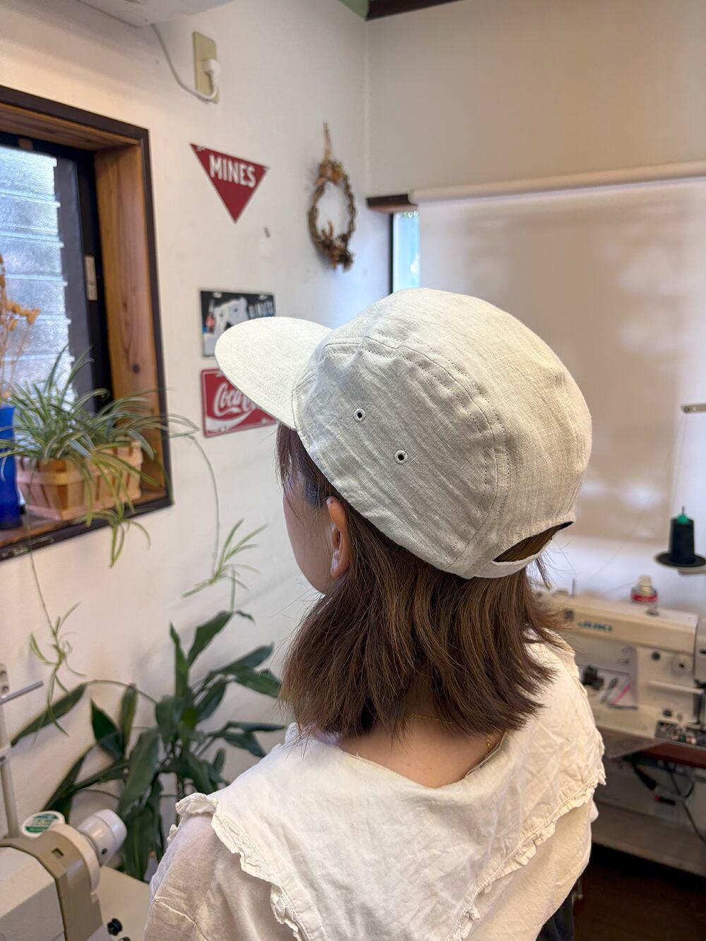 麻素材 ジェットキャップ(オフホワイト・白 ベルギーリネン・麻)